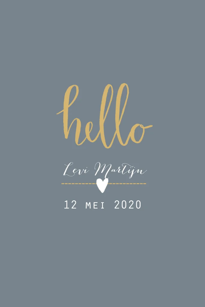 Een typografie geboortekaartje met een handgeschreven "hello" tekst op de kaart. Wil je iets anders of zijn er vragen mail ons gerust, dan helpen wij je graag!