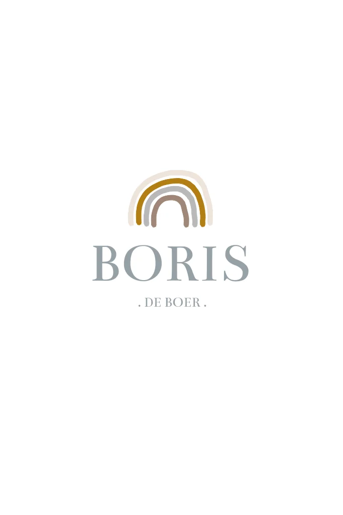 Een lief eenvoudig regenboog geboortekaartje met een kraft look achtergrond.