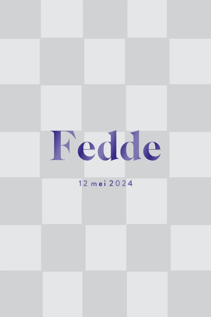 Het geboortekaartje ruit blok is een hip kaartje met een ruit achtergrond in blauwen kleuren. Met het lettertype in spot UV.