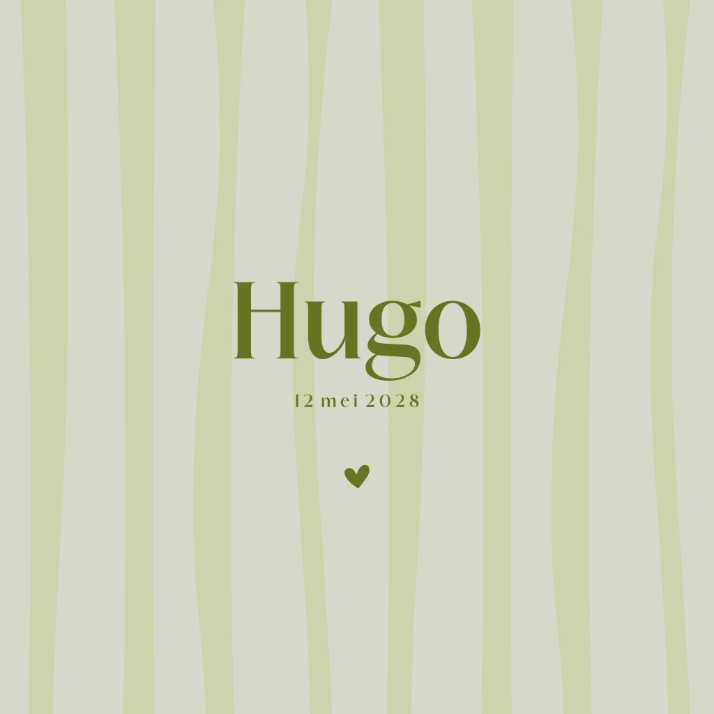 Een vrolijk, fris en stoer geboortekaartje met een strepen patroon. Achtergrond kleur en tekst kleuren kunnen gewijzigd worden.