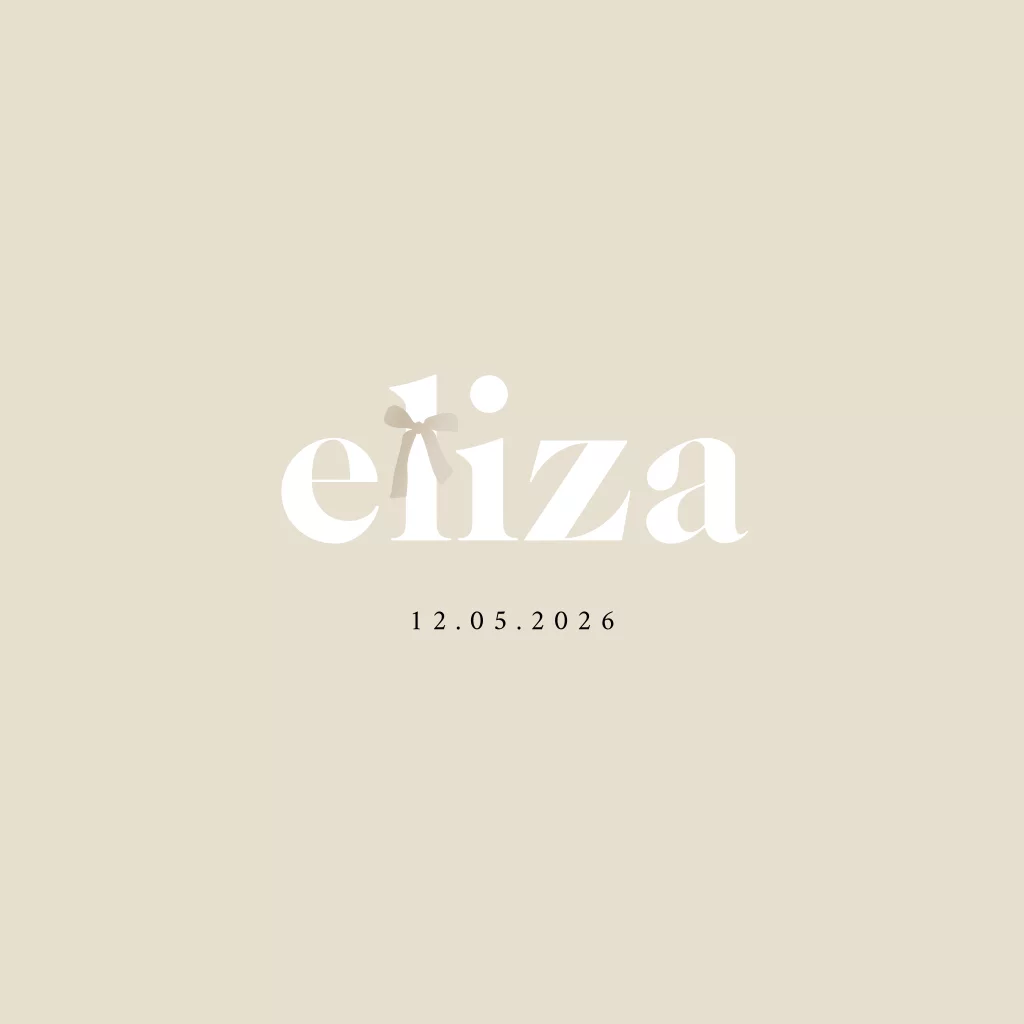 Een mooi minimalistische uniseks geboortekaartje met een strikje in naturel tinten. Achtergrond kleur en tekst kleuren kunnen gewijzigd worden.