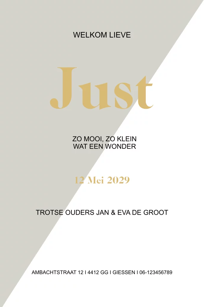 Een lief en stoer geboortekaartje met een grafische vorm. Verander de tekst en je kaartje is heel persoonlijk.
