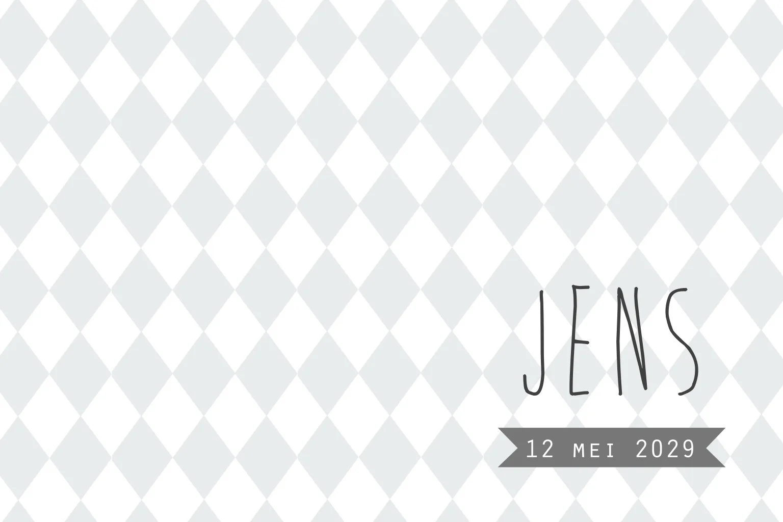 Een lief enkel geboortekaartje met een wieber ruit aan de voorkant. Pas de tekst en evt. de kleur aan!