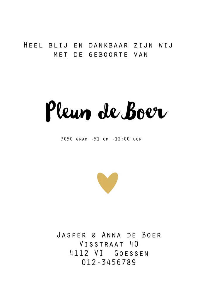 Een eenvoudig mooi lief geboortekaartje met een goudlook confetti. De tekst en kleuren kunnen worden aangepast!