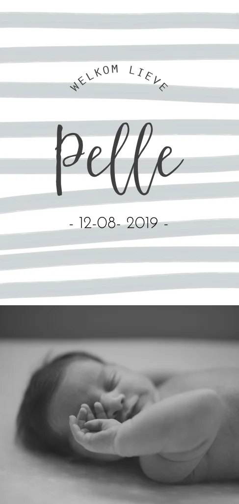 Een lief staand geboortekaartje, met brush strepen die je kan veranderen in kleur. Plaats een eigen foto en verander gerust de kleur en tekst op het kaartje, zodat het kaartje helemaal naar wens is.