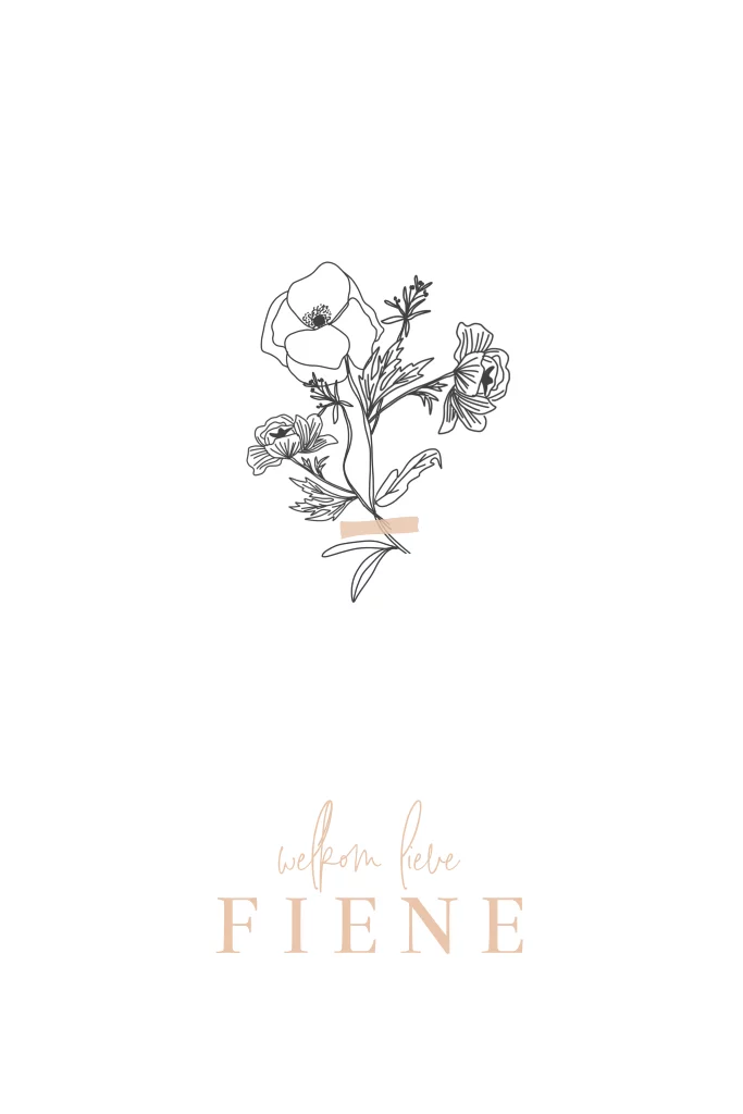 Een lief eenvoudig kaartje met bloemen geboortekaartje met een kraft look achtergrond in en perzik roze kleur.