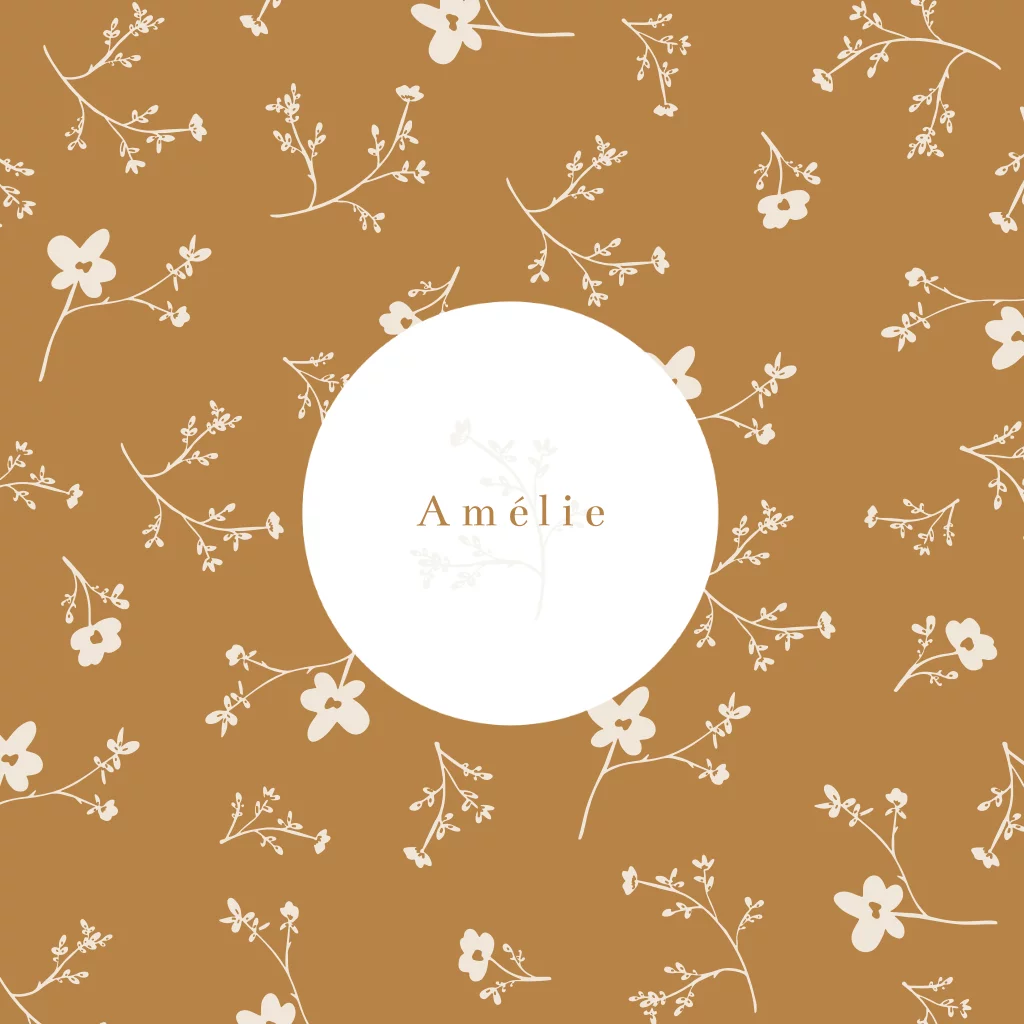 Een heel lief geboortekaartjes met kleine bloemetjes en een rond vlak. De kleuren kunnen worden aangepast.