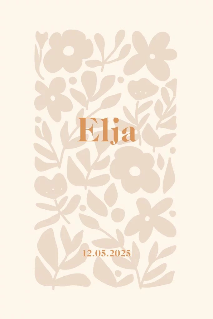 Een mooi geboortekaartje met bloemetjes. De achtergrond en teksten kunnen gewijzigd worden van kleur.