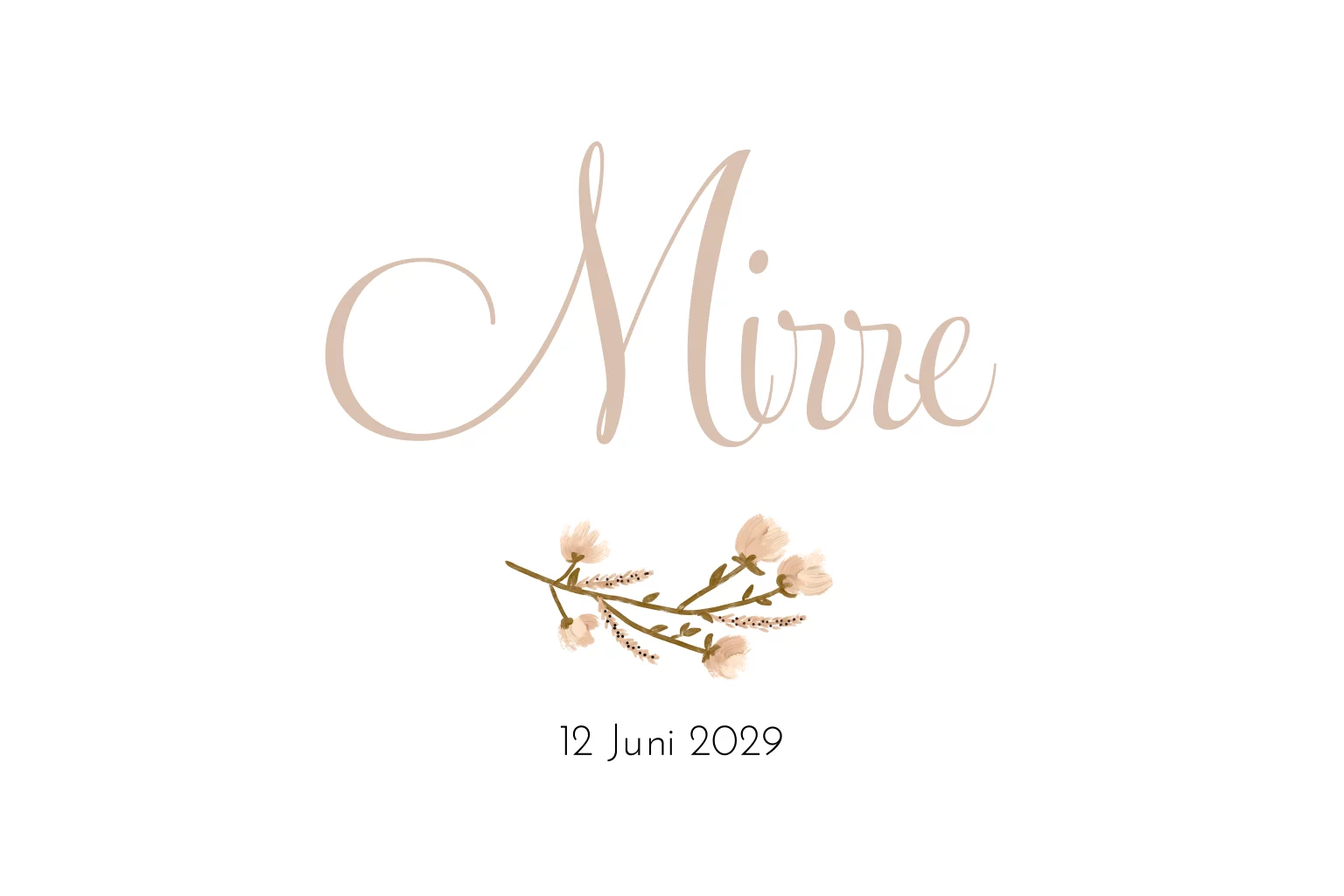 Een lief enkel geboortekaartje in pastel kleuren. Met een afbeelding van bloemetjes. Lettertype en kleuren kunnen gewijzigd worden.