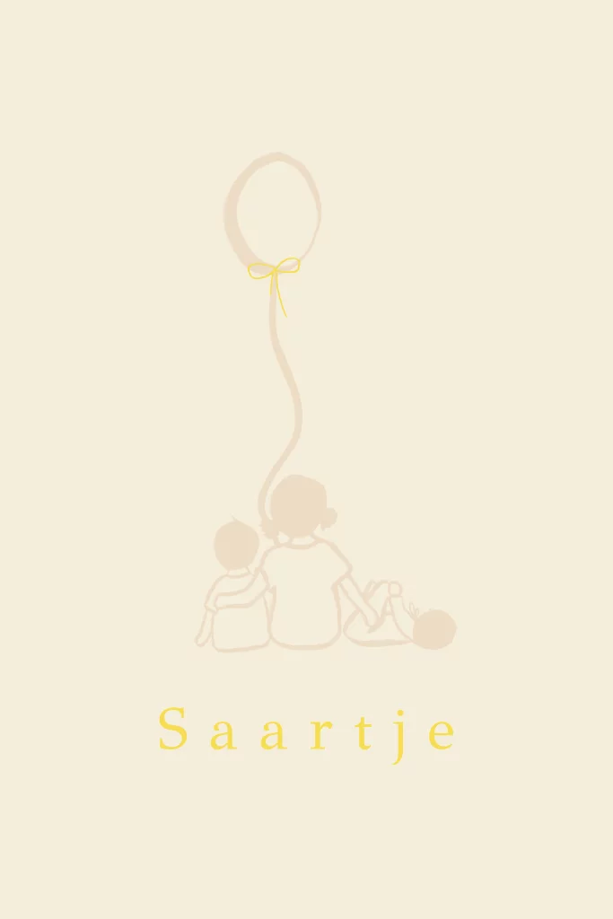 Een heel mooi geboortekaartje met een tekening van een broertje en zusjes. We kunnen de tekening wijzigen in verschillende gezinssamenstellingen, mail ons dan even!