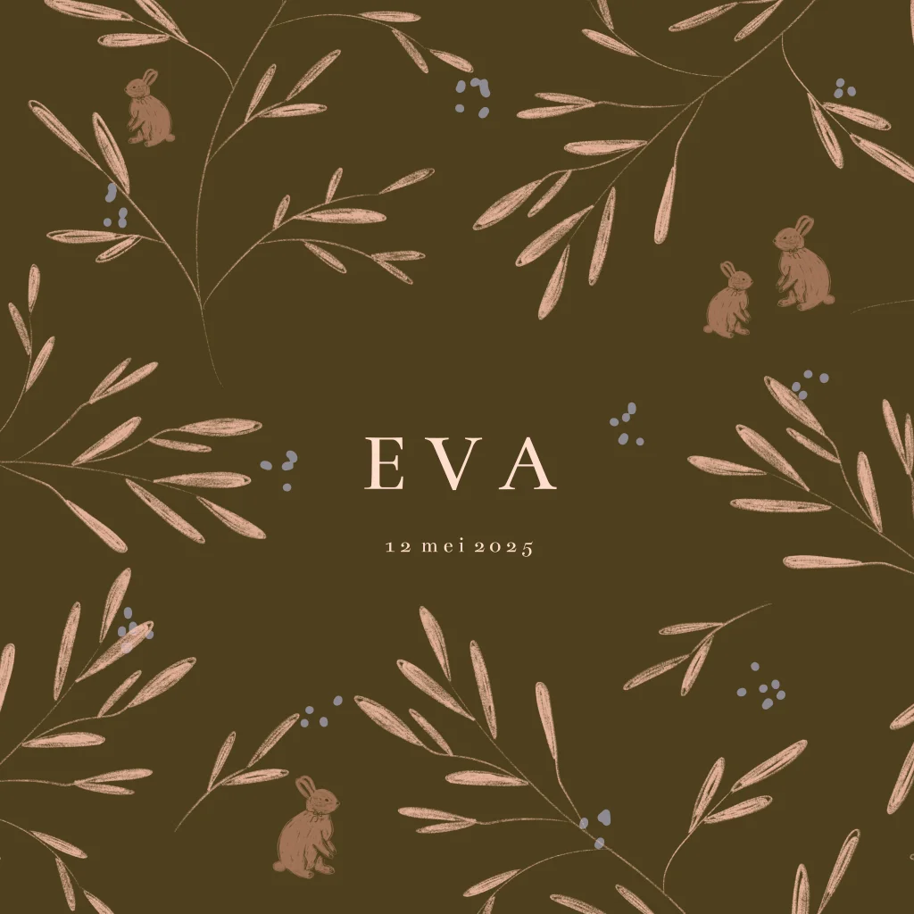 Een lief geboortekaartje met takjes en konijntjes. Kleuren kunnen gewijzigd worden.
