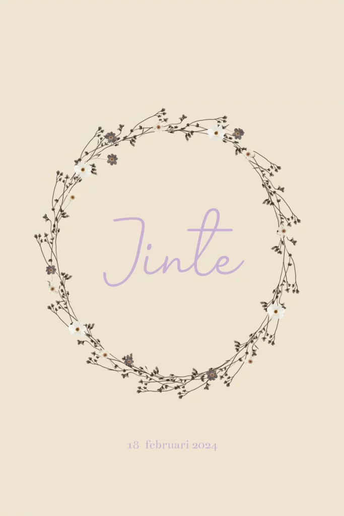 Een mooi geboortekaartje met een krans met bloemetjes. Kleur van achtergrond en tekst kan naar wens gewijzigd worden.
