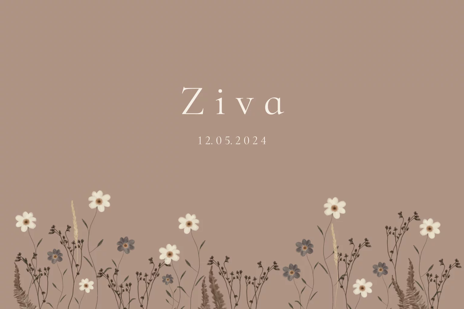 Een heel eenvoudig geboortekaartje met takjes en bloemetjes.