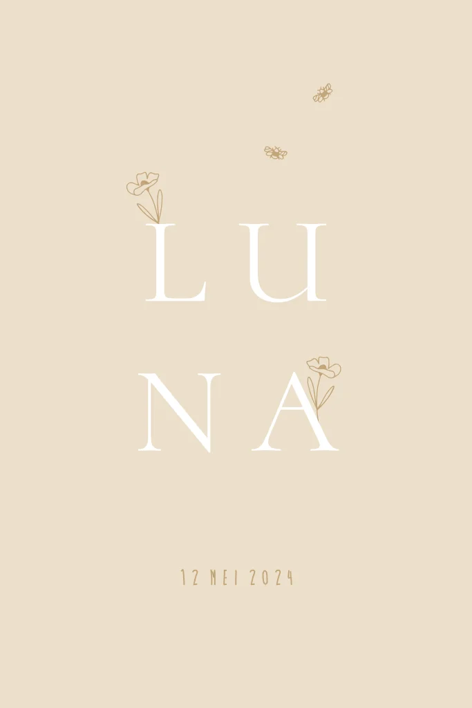 Een mooi eenvoudig geboortekaartje met lijn illustraties in naturel kleuren. Kleuren en tekst kunnen gewijzigd worden.