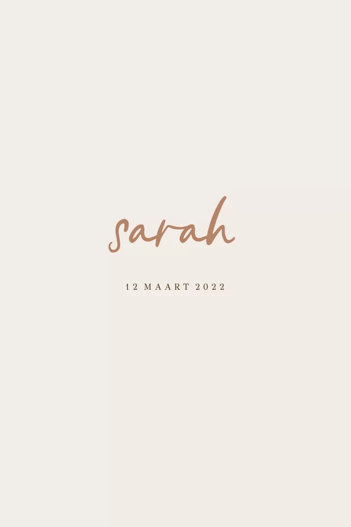 Een minimalistische uniseks geboortekaartje met tekst. Kleuren kunnen worden aangepast.