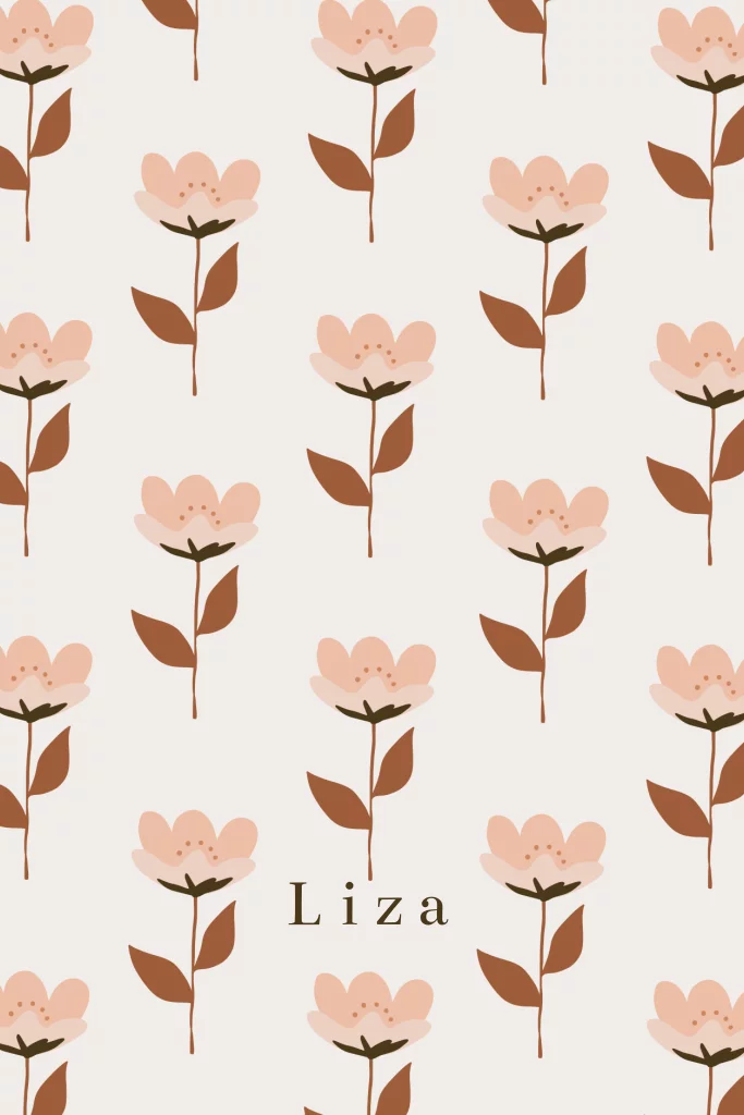 Een heel mooi geboortekaartje een patroon van een retro bloem. Dit ontwerp is gemaakt in samenwerking met Bibelotte en er is ook behang van.