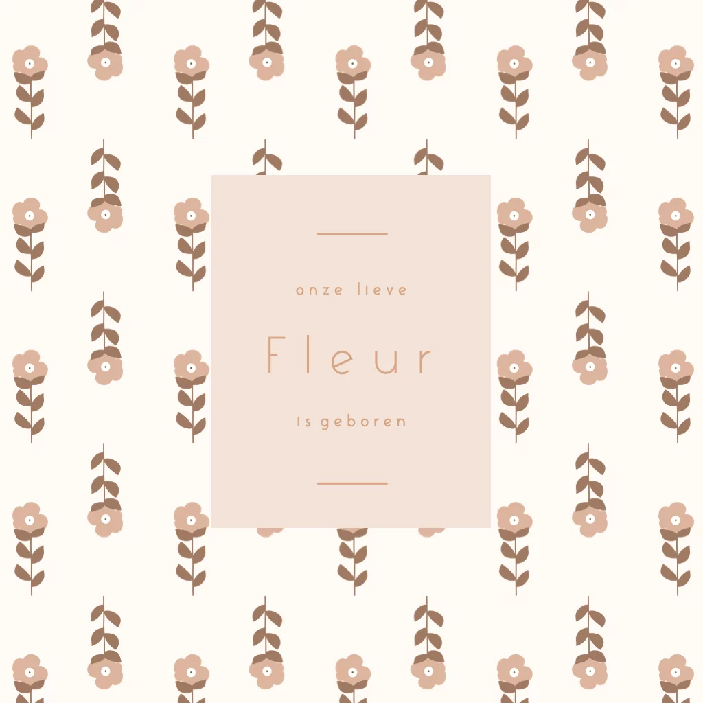 Een mooi geboortekaartje met een retro patroon met bloemetjes. Van dit bloemetje is ook behang te verkrijgen bij www.bibelotte.nl