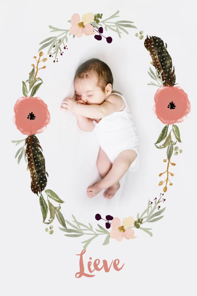 Een lief en bohemian style kaartje met bloemen en veren. Wil je iets anders of zijn er vragen mail ons gerust, dan helpen wij je graag!