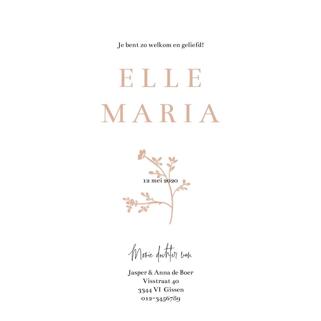 Een heel lief kaartje met een takje, en de mogelijkheid voor een foto aan de binnenkant.