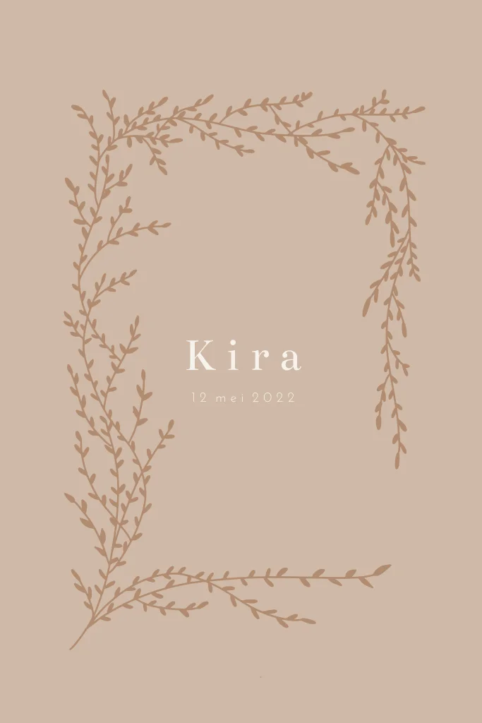 Een lief geboortekaartjes met ronde hoeken in roze tinten met takje. Kleuren kunnen gewijzigd worden.
