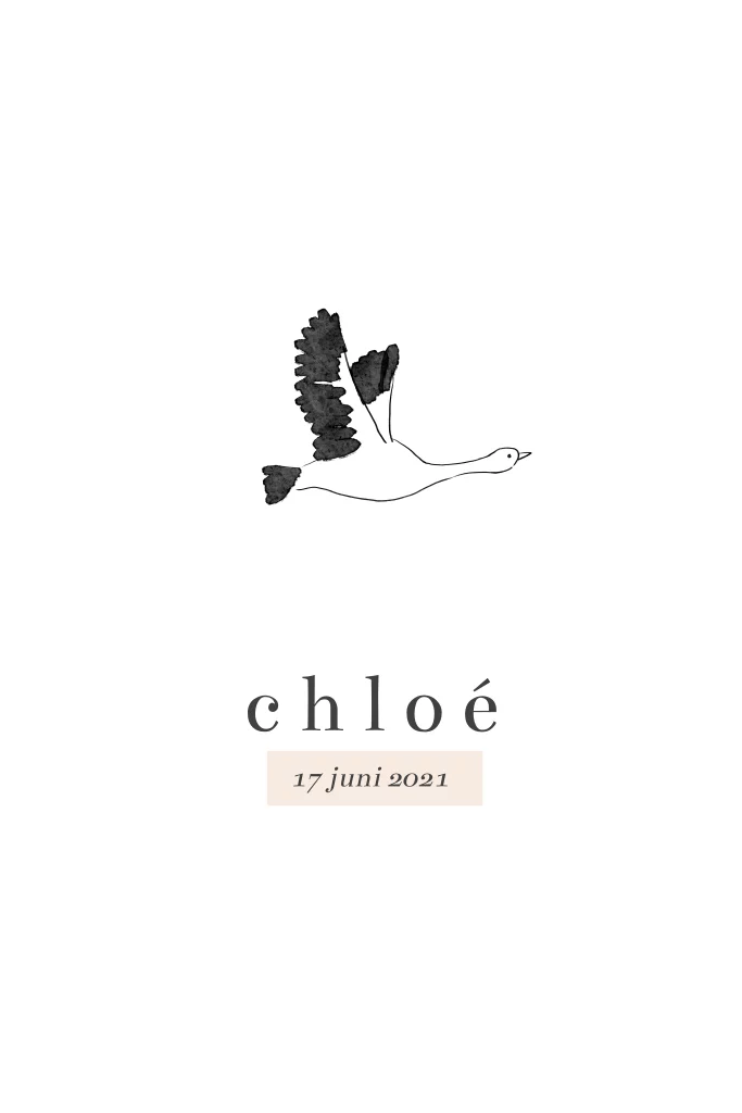 Een lief eenvoudig geboortekaartje met tekening van een zwaan / vogel. Kleuren kunnen gewijzigd worden.