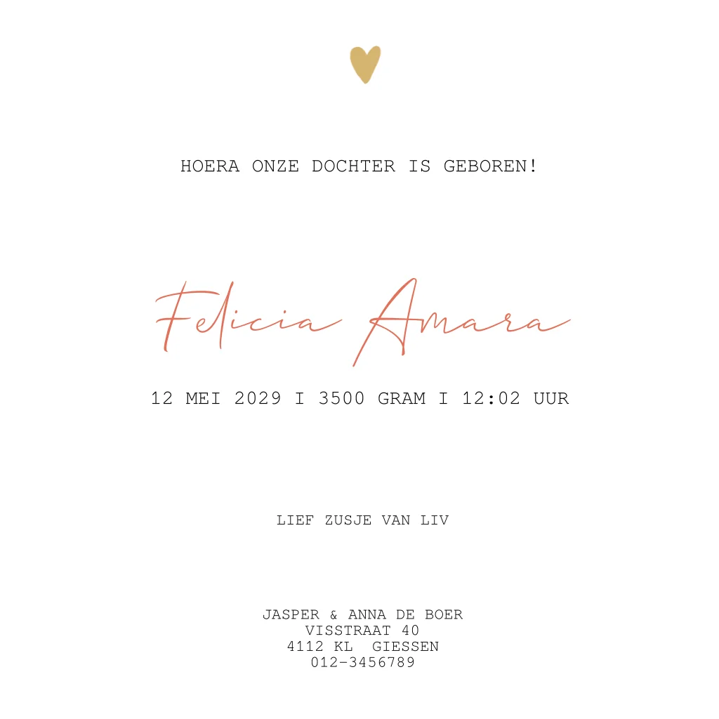 Een lief en strak geboortekaartje met hartjes en een pijl. Kleuren kunnen gewijzigd worden. Heb je vragen? mail ons gerust.