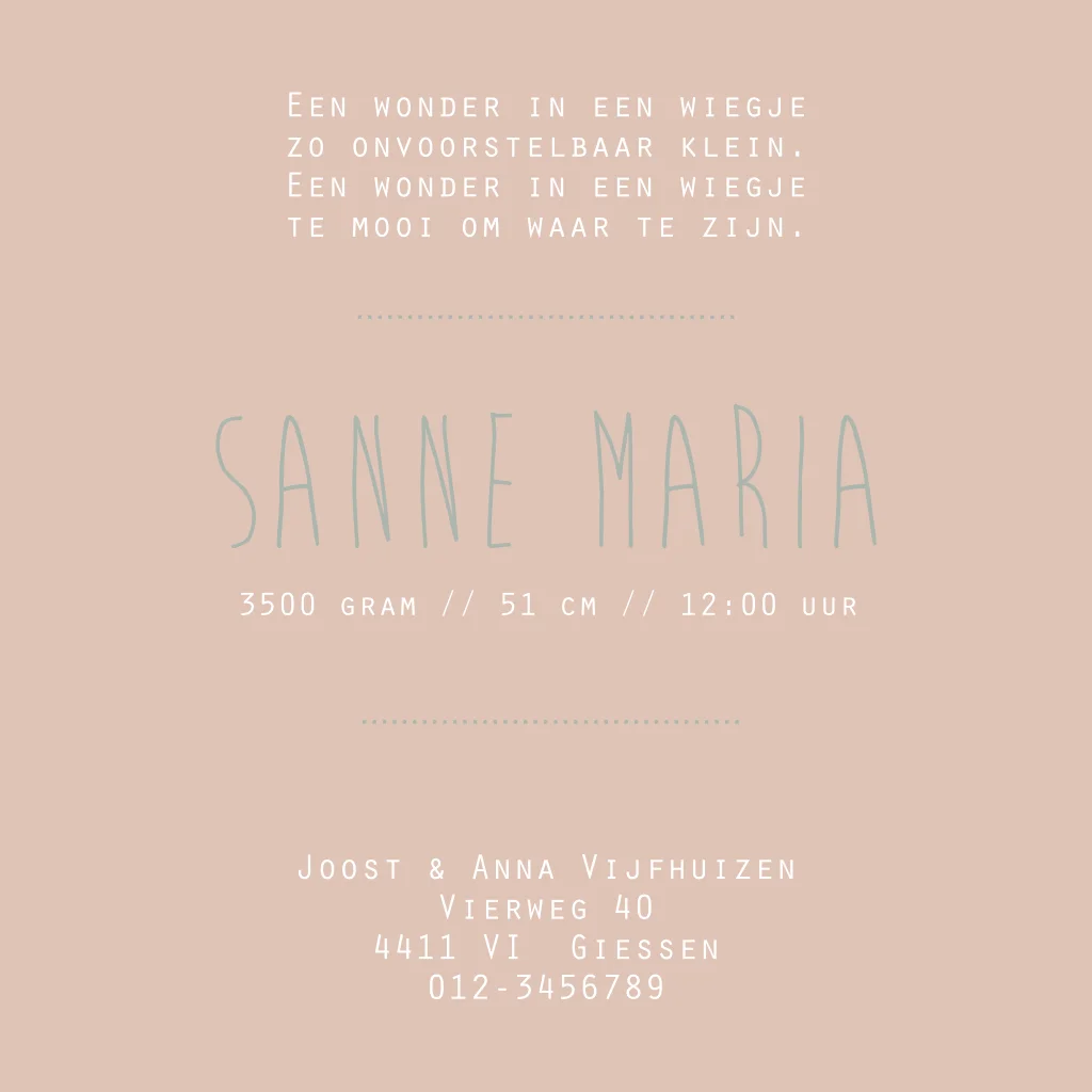 Geboortekaartje Sanne