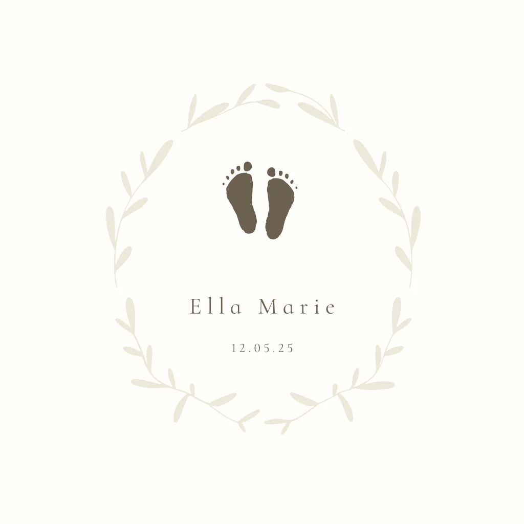 Een lief kaartje met een krans en voetafdrukjes. Wil je een afdruk van de voetjes van je eigen kindje er op hebben? Mail ons dan eerst even voor de mogelijkheden.