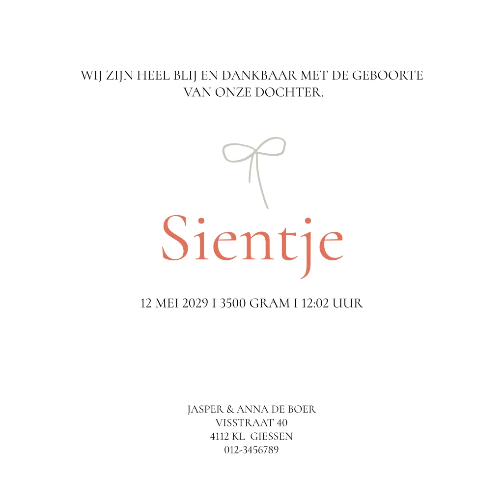 Een stoer geboortekaartje met een strik/bowtie. In de kleuren rood/roze. Kleuren kunnen gewijzigd worden. Heb je vragen? mail ons gerust.