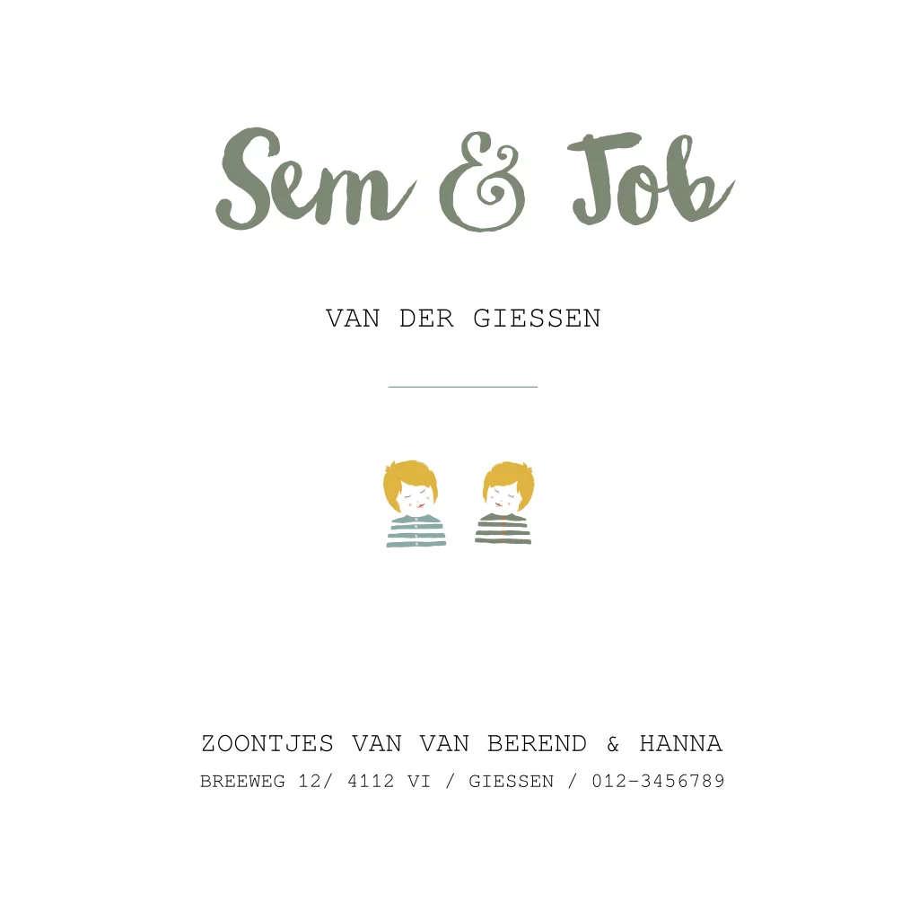 Geboortekaartje Sem en Job