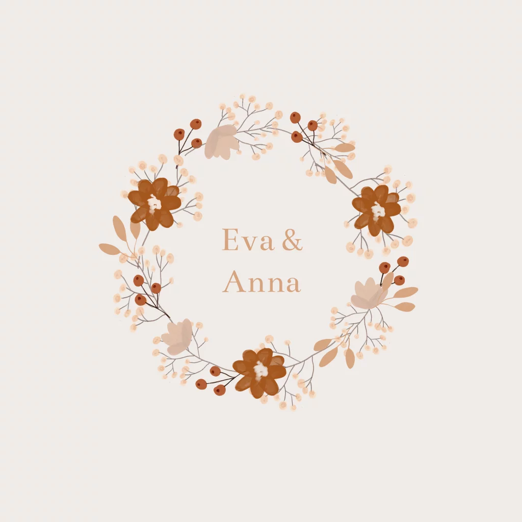 Een mooi geboortekaartje in herfstkleuren met een krans en op de voorkant.