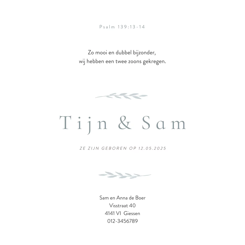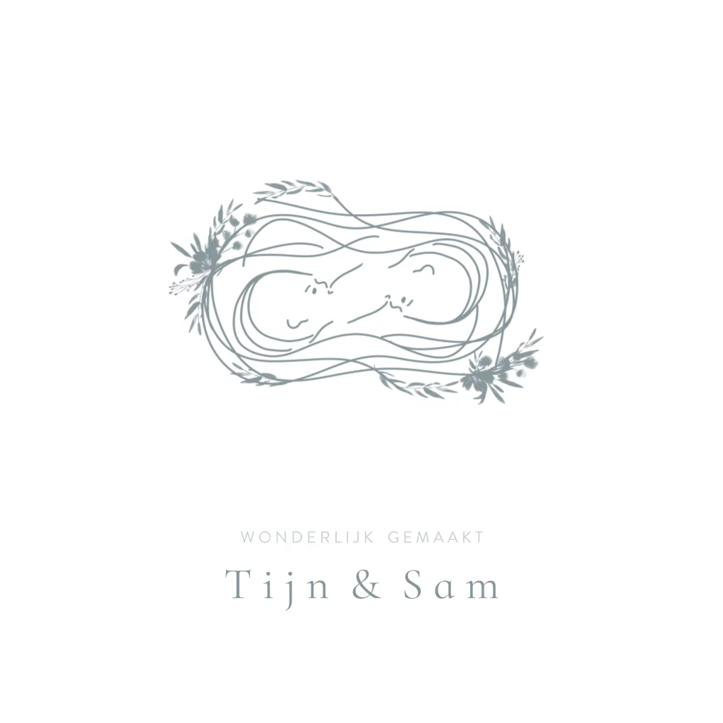 Een mooi geboortekaartje met een lijntekening van twee baby's en de christelijke tekst wonderlijk gemaakt. Kleuren kunnen worden aangepast.
