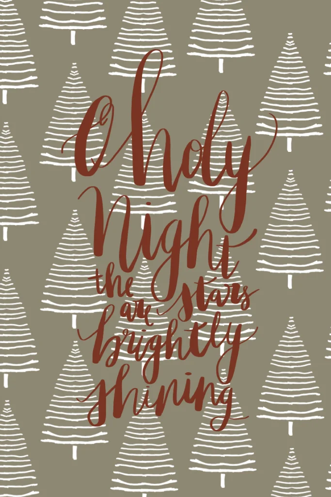 Een kerstkaart met een handlettering tekst ( die je kan verwijderen ) met handgetekende bomen. Leuk om te versturen of gewoon om op te hangen in je huis.