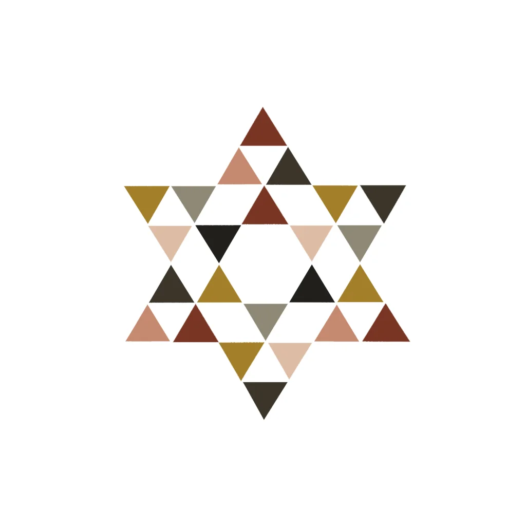 Een kerstkaart met een gekleurde davidster.