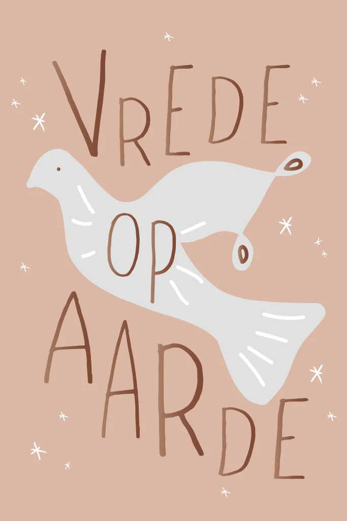 Een mooie kerstkaart met een duif en de tekst "Vrede op aarde".