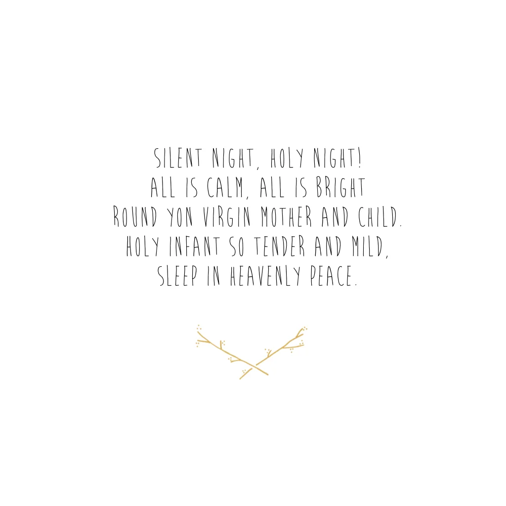 Een kerstkaart met hand getekende takjes, en de tekst stille nacht. De kleur van de takjes kunnen gewijzigd worden.
