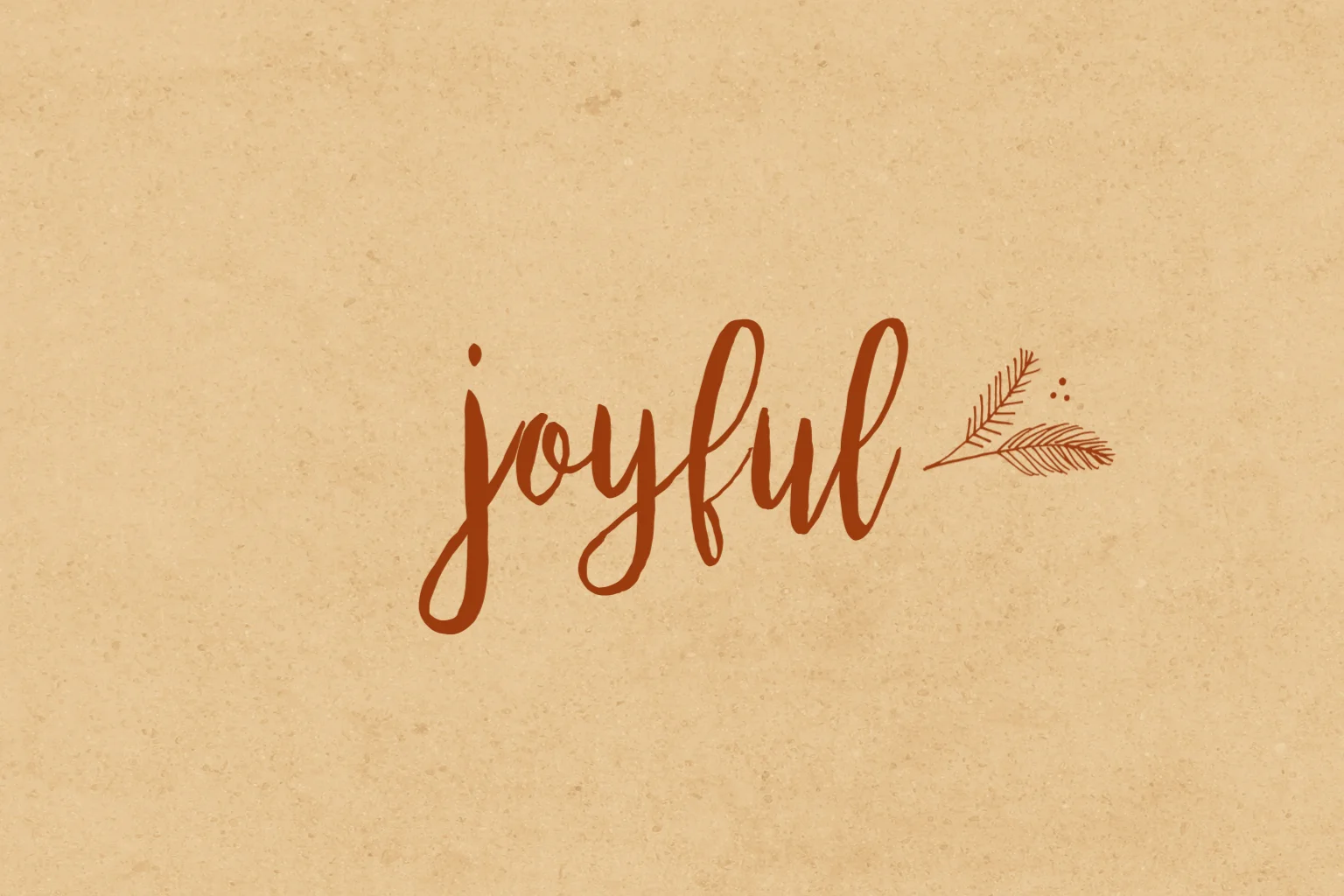 Een kerstkaart met kraft look achtergrond een handgetekende tekst "Joyful"