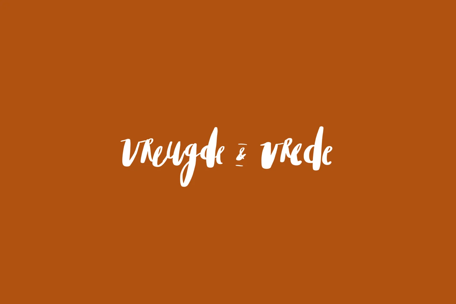 Een eenvoudige kerstkaart met een handlettering tekst "Vreugde en Vrede", en twee kleine kerst takjes.