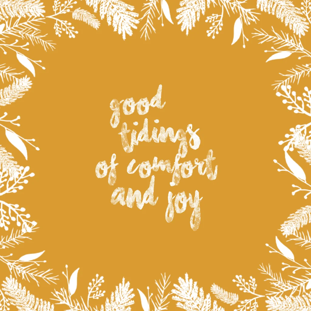 Een handlettering kerstkaart met een tekst en handgetekende blaadjes.