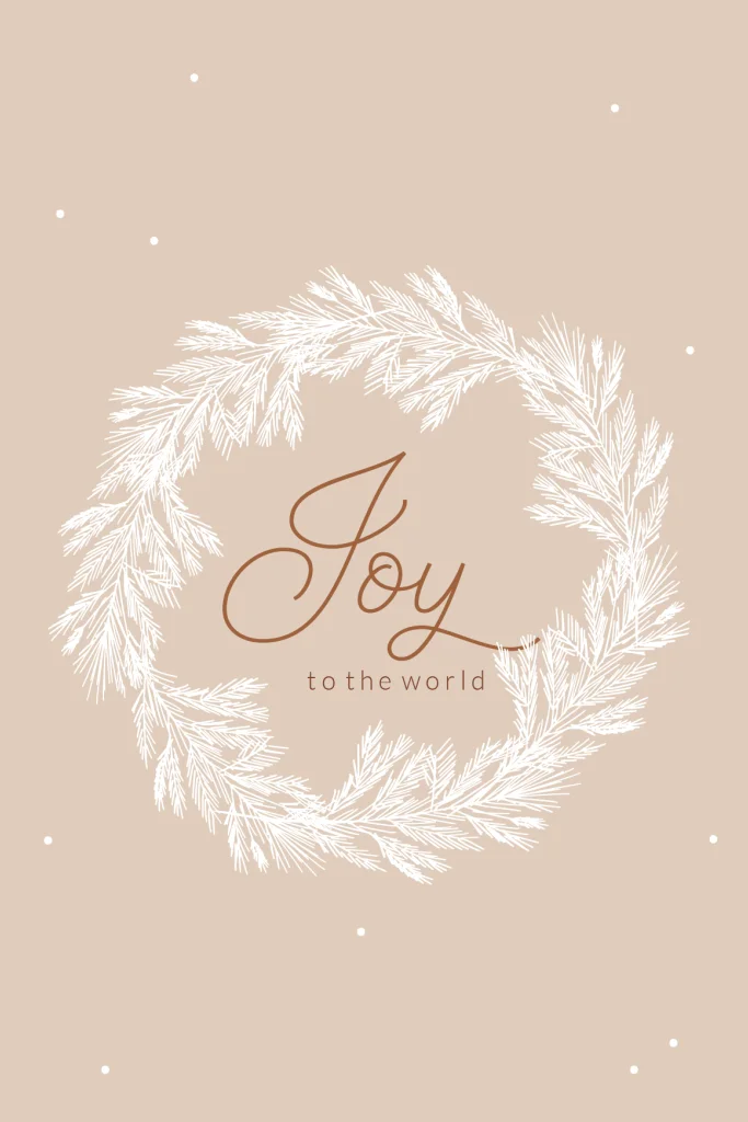 Een mooie kerstkaart meteen krans en een tekst "Joy to the world".