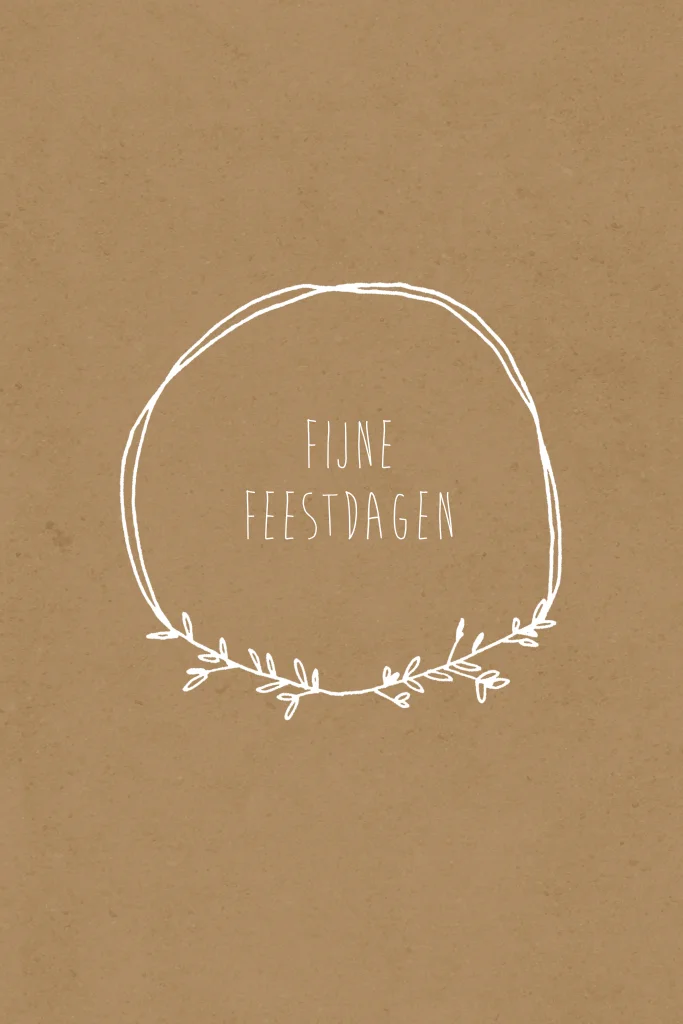 Een trendy hand getekende krans, een kerstkaart met een kraft look als achtergrond. En stippen die de kaart echt winters maken.