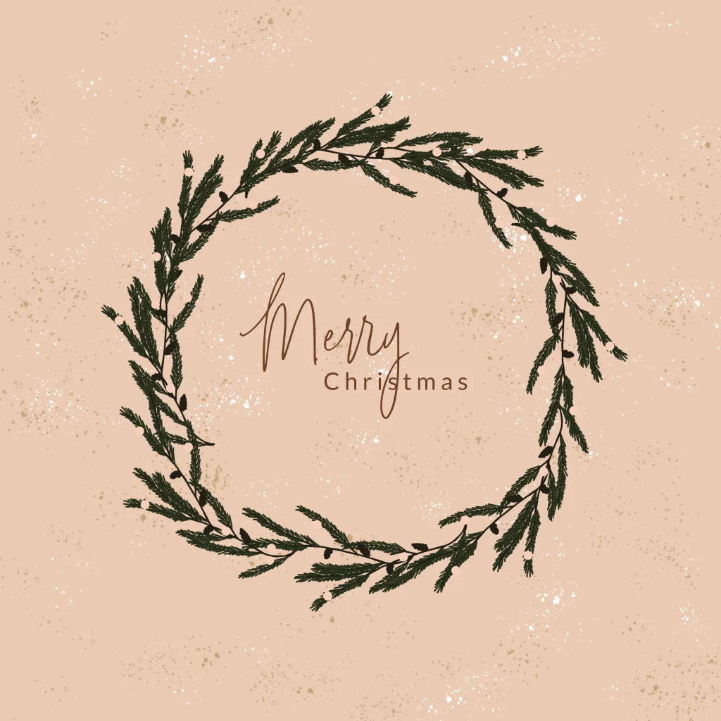 Een mooie kerstkaart, met een krans en de tekst kan gewijzigd worden.