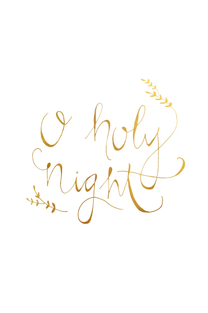 Een trendy handlettering kerstkaart in goud look. En met een vaste tekst "o Holy night ".
