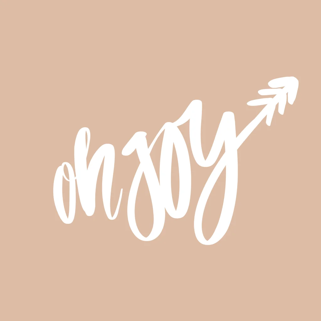 Een handlettering kerstkaart met een een tekst "oh joy".
