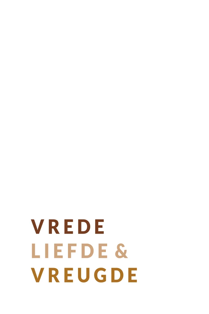 Een mooie kerstkaart met een tekst " Vrede, liefde & vreugde".