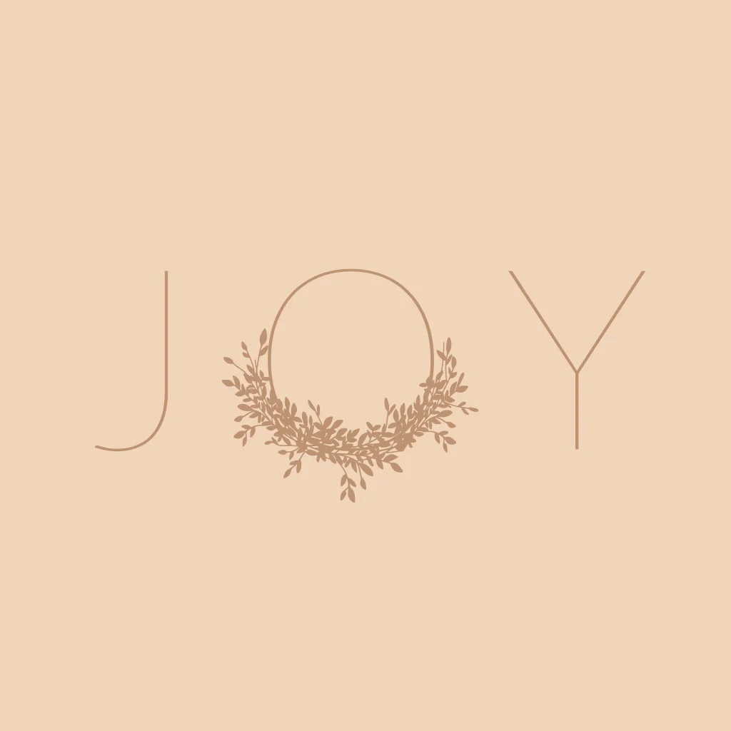Een mooie kerstkaart, met een krans en de tekst JOY.