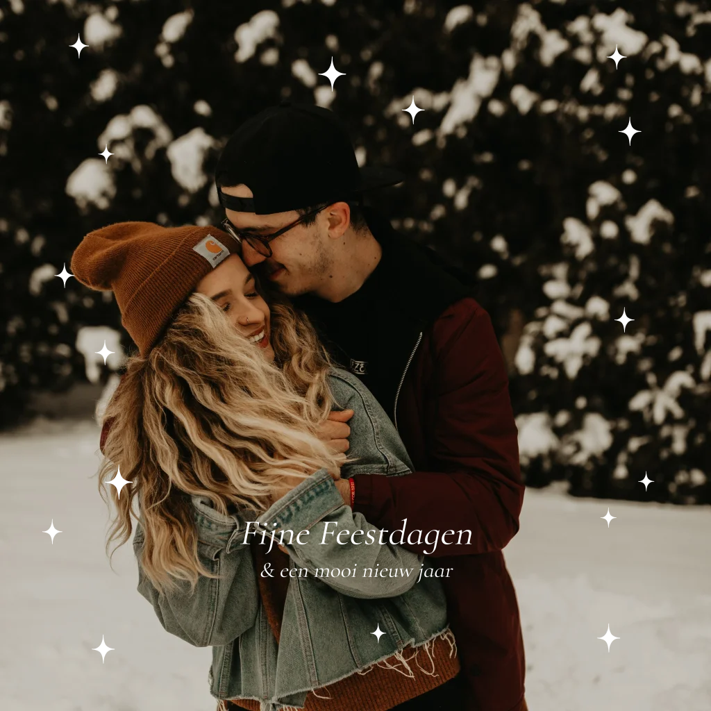 Een mooie kerstkaart met goudfolie sterren en tekst. Foto en tekst en de kleuren kan je zelf wijzigen.