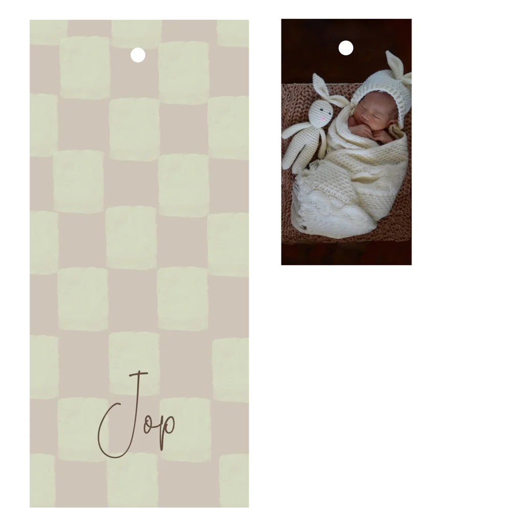 Dit geboortekaartje met een block patroon en een label is een perfecte keuze voor ouders die op zoek zijn naar een unieke en originele aankondiging voor de geboorte van hun dochter. De foto label kan met een lintje of splitpen aan het kaartje bevestigd worden, geeft een extra vleugje charme aan dit lieve kaartje. Let op: Het lint of splitpen wordt niet meegeleverd, maar kan apart worden besteld om het kaartje naar wens aan te passen.