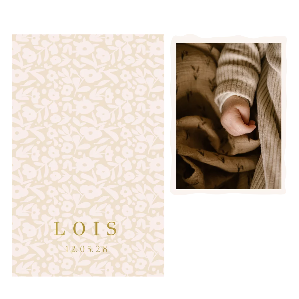 Een mooi geboortekaartje met een label met een schulprand, die je met een paperclip aan elkaar kan bevestigen. Paperclip zit er niet bij, deze moet je er los bij bestellen.