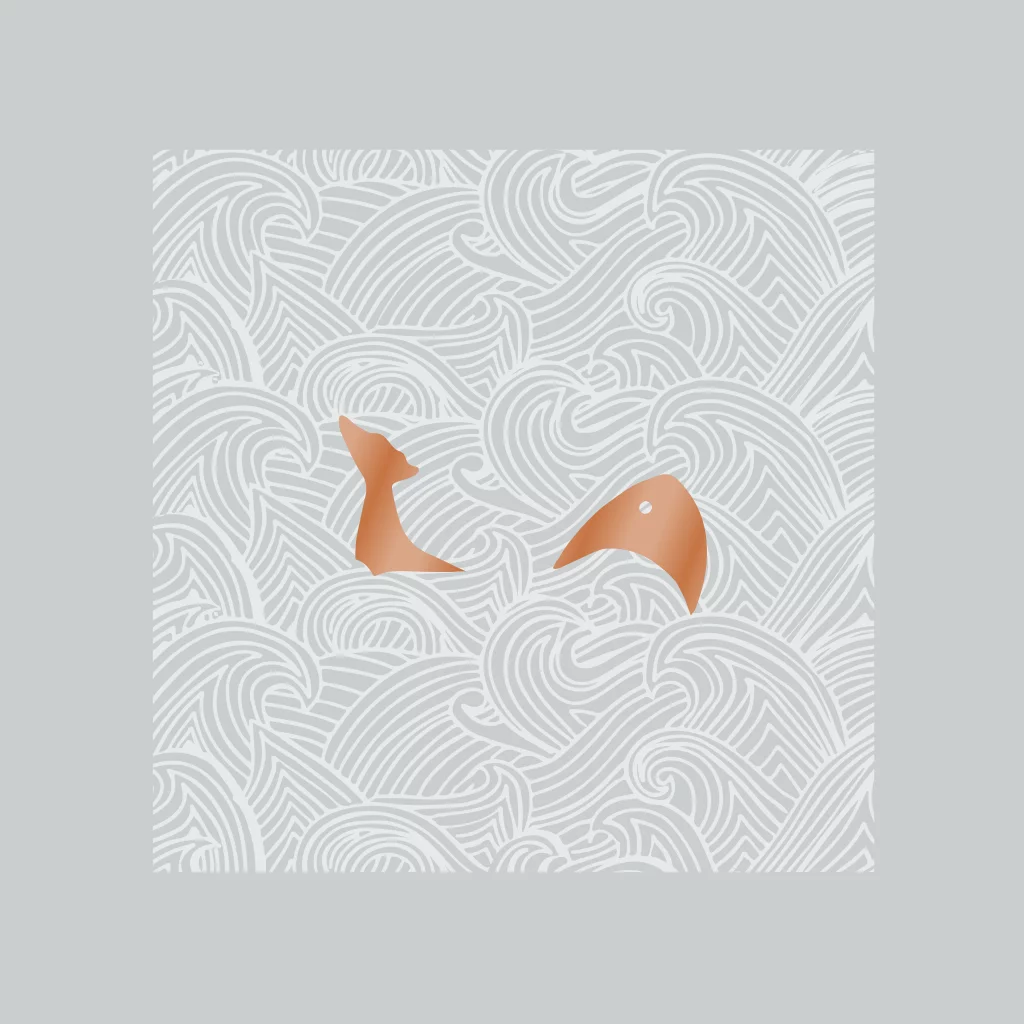 Poster met foliedruk vierkant, met een walvis en golven..kleuren gewijzigd worden.